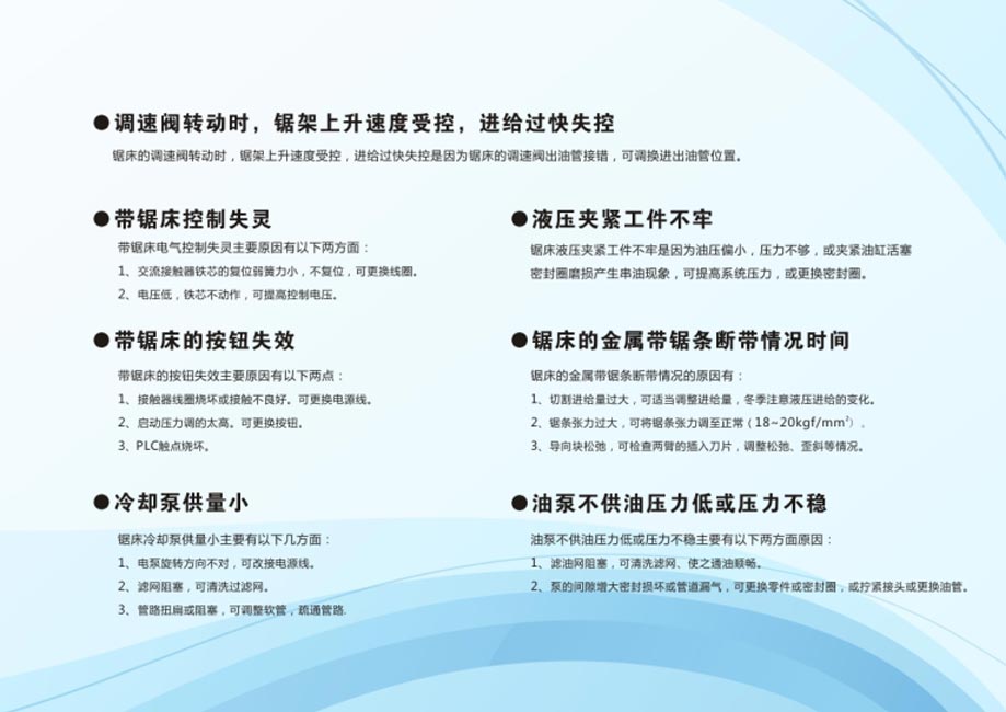 帶鋸床的(de)常見故障(zhàng)及解決方(fang)法